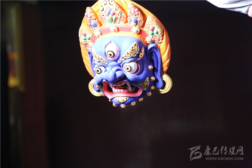 待面具自然風干后,用礦物質、植物的根等制作的自然顏料進行著色,自然顏料有不變色、耐光的特性,通過一淡、二濃、三淡的上色過程使面具涂色均勻,待顏料曬干后對面具進行磨光,去除雜物,再對面具進行裝藏念經,如此,一個藥泥面具制作完成。做好的藥泥面具有濃郁的藥材香氣,并有著驅蚊、殺菌、抗病毒、清潔空氣、解除疲勞等功效。