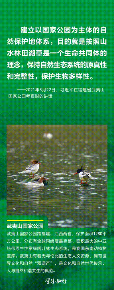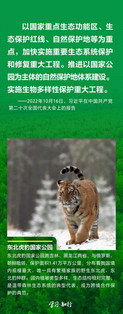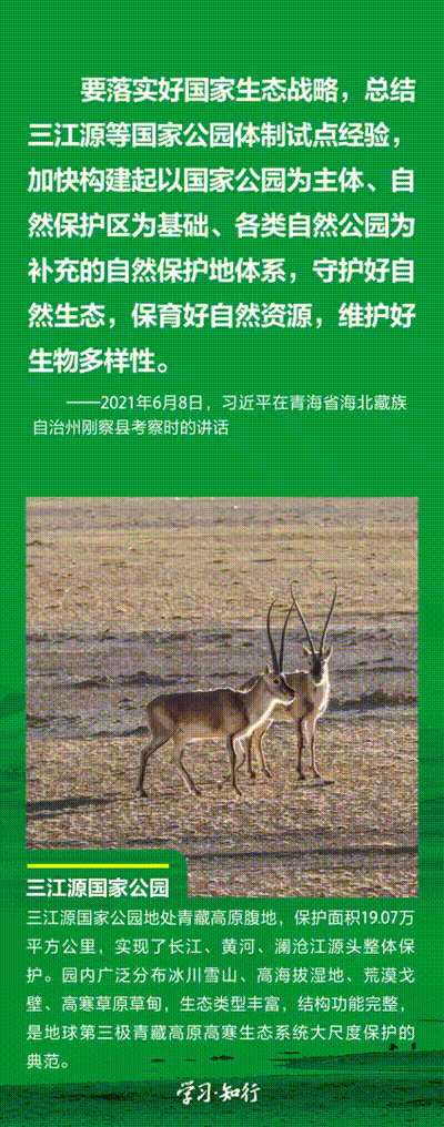 “生物多樣性使地球充滿生機,也是人類生存和發展的基礎?!蓖七M以國家公園為主體的自然保護地體系建設,是習近平總書記作出的重要部署。三江源、大熊貓、東北虎豹、海南熱帶雨林、武夷山等首批國家公園正式設立以來,生態功能持續向好,對保護生物多樣性、推進人與自然和諧共生的現代化具有重要意義。