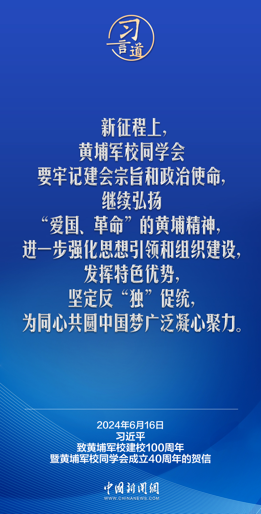 在黃埔軍校建校100周年暨黃埔軍校同學會成立40周年之際,中共中央總書記、國家主席、中央軍委主席習近平發來賀信,代表中共中央向黃埔軍校同學會表示熱烈祝賀,向廣大海內外黃埔同學及其親屬致以誠摯問候。習近平指出——