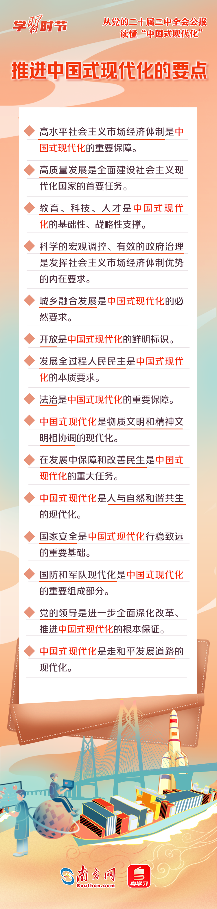 中國式現代化是中國共產黨和中國人民長期實踐探索的成果,是一項偉大而艱巨的事業。全會公報中,“中國式現代化”一詞被反復提及,深刻闡述了進一步全面深化改革與推進中國式現代化的關系,以及中國式現代化的重要保障、必然要求、本質要求等重要內容。一起來學習!