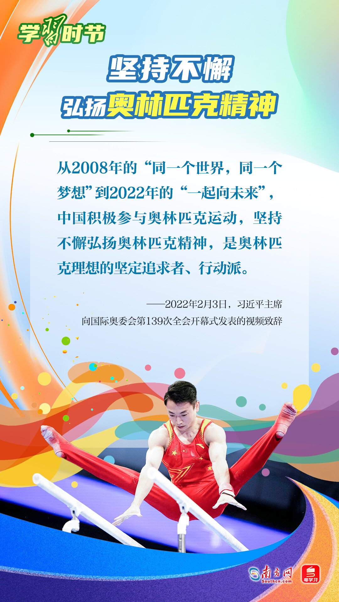 “我們不以勝負論英雄,同時英雄就要敢于爭先、敢于爭第一。”習近平總書記曾在不同場合論述奧林匹克精神,深刻闡明了勝與負、成與敗的辯證關系,對奧林匹克“更快、更高、更強——更團結”的格言進行詮釋。讓我們一同學習習近平總書記對奧林匹克精神的重要論述,心懷夢想、奮勇拼搏,攜手走向美好明天。