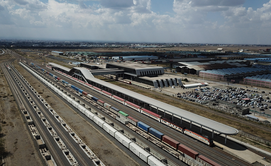 ??這是2023年9月20日在肯尼亞首都內羅畢拍攝的蒙內鐵路內羅畢站(無人機照片)。新華社記者 韓旭 攝