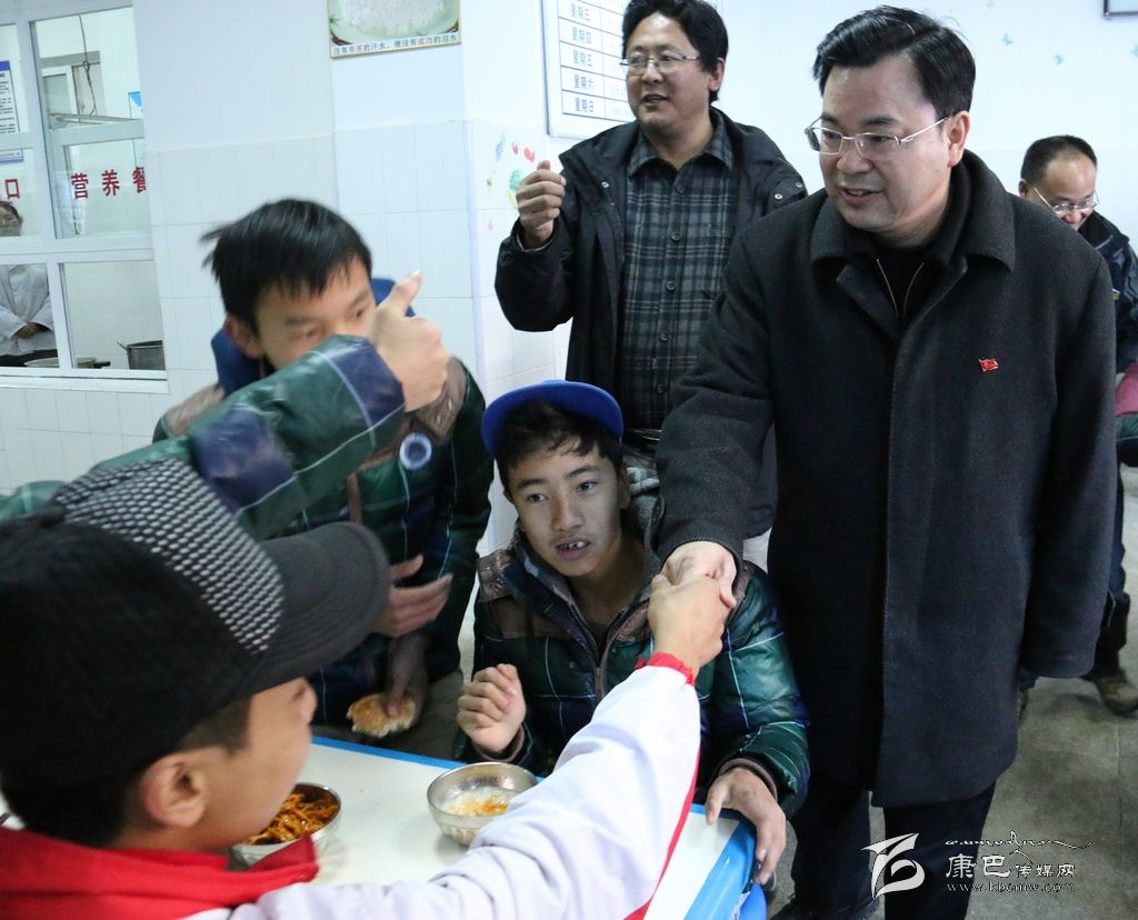 來到州特殊教育學校,學校校長澤仁郎吉告訴胡昌升,“地震來臨時,學校教師按照過去的地震應急演練,組織全校80多名學生有序撤離,無一人受傷。地震發生后,家長到學校看到孩子都很安全,非常放心”。胡昌升對該校在關鍵時刻及時有序疏散學生的做法給予了充分肯定。走進學校食堂,全校學生正在吃早飯,見到胡昌升一行,所有孩子都伸出手指,用手語向大家表示感謝。胡昌升對周圍的州教育局負責同志和學校老師說,學校要嚴密防控余震帶來的次生災害,確保大家安全。