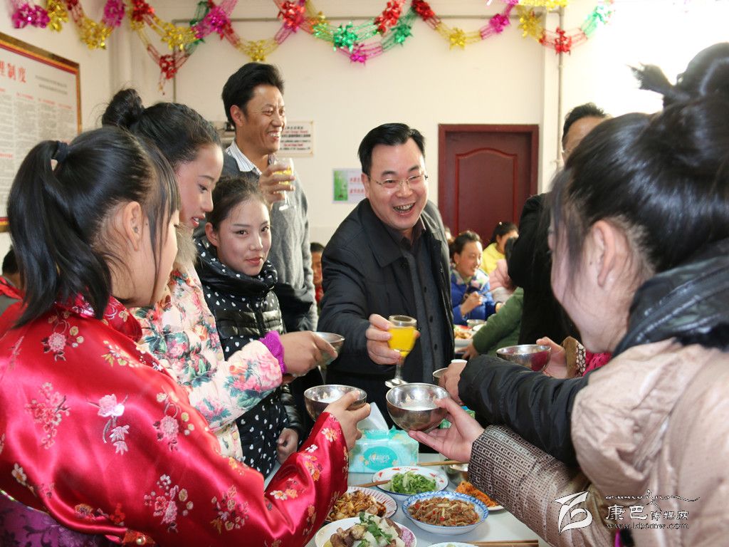 “現在我們共同舉杯,祝愿我們的老師們家庭幸福,祝愿孩子們學習進步,健康成長,新年有新成就,扎西德勒。干杯!”胡昌升以茶代酒,祝福大家春節愉快、萬事如意。