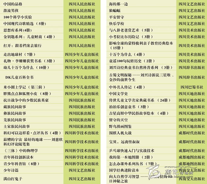 2016年向全省青少年推薦50種川版優秀出版物目錄