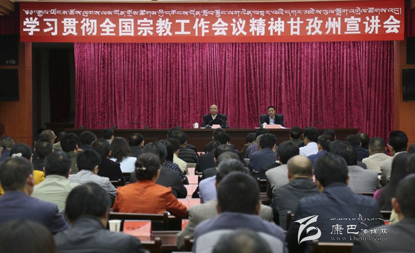 州委書記劉成鳴主持宣講會。他要求,全州各級黨員干部要結合本次宣講,認真學習領會好全國宗教工作會議精神,深入學習習近平總書記重要講話精神,準確把握宗教工作的基本方針和內容要求,準確領會習近平總書記的新思想新觀點新要求,切實把思想和行動統一到講話精神上來;各地各部門要緊密結合“兩學一做”學習教育,以學習貫徹全國宗教工作會議精神為主線,通過州、縣、鄉三級聯動,堅持點面結合、分類施策、精準滴灌,迅速開展黨員干部、村干部、農牧民群眾和寺廟僧尼四個層面的宣講活動,迅速掀起學習貫徹全國宗教工作會議精神的熱潮,凝聚全州各族干部群眾的思想共識;各級黨員干部要深刻領會宗教工作在全州工作大局中的特殊重要性,把握處理好宗教工作的“四大關系”,切實增強做好宗教工作的責任感和使命感,堅持情理法并舉,依法加強宗教事務管理,扎實推進寺廟分類管理達標升級,全方位、多角度加強僧尼的宣傳教育,繼續做好寺廟和僧尼的公共服務,引導藏傳佛教與社會主義社會相適應。
