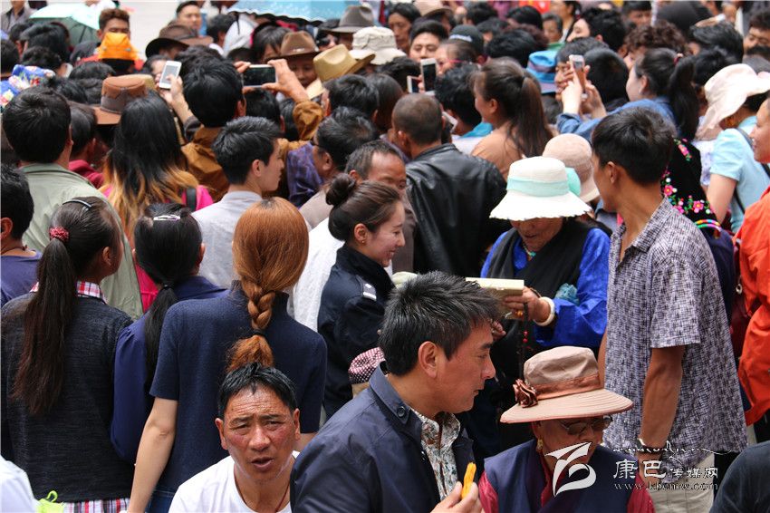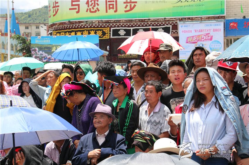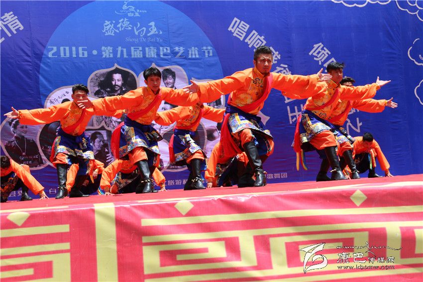 儀式上,當擁金措、貢桑吉和布姆分別演唱了《世紀情白玉夢》、《欽諾》和《康巴之戀》時,場下掌聲不斷。接著,當州民族歌舞團的小伙們跳起歡快的《踢踏》時,在場的觀眾立刻與之互動,并不時爆發(fā)出熱烈掌聲。