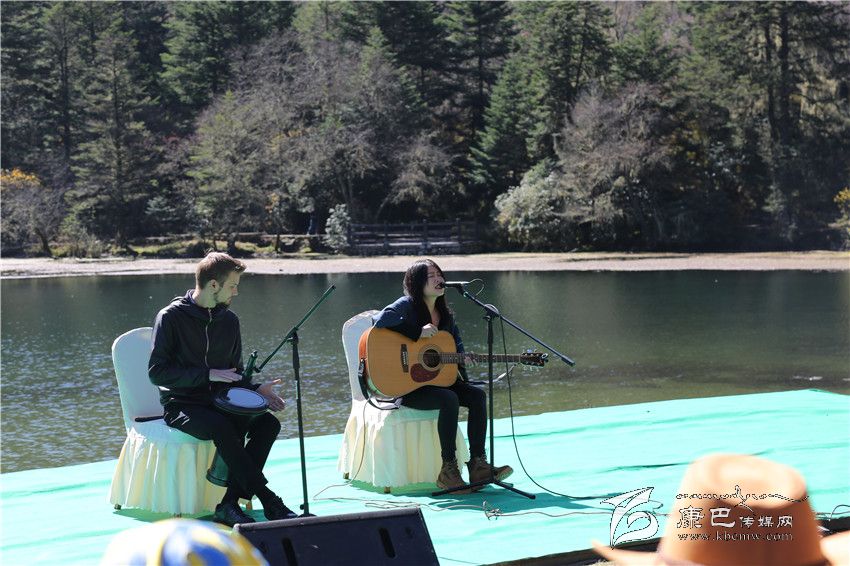 深秋的木格措,漫山遍野披上了金色的外套,七色海也被陽光撒上了一層斑斕的“魚鱗”,泛著星光,很難想象這副如畫的風景和不插電音樂將會碰撞出怎樣的火花。