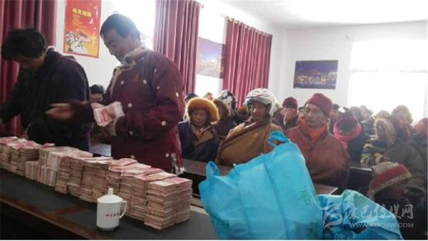 俄達門巴村民現場領取分紅款。