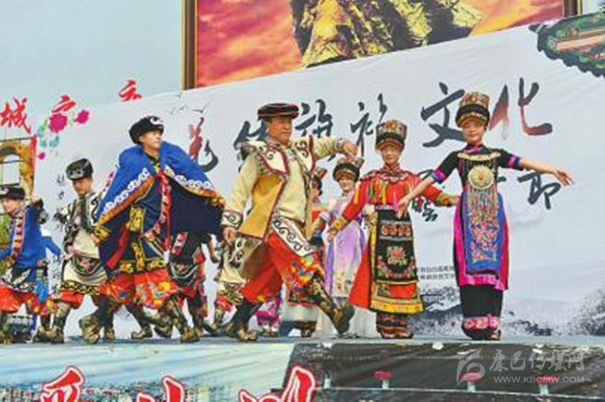 4月29日,綿陽市北川羌族自治縣巴拿恰街文化廣場,當地群眾身著民族服裝走秀,歡度“五一”。 寇元林 攝