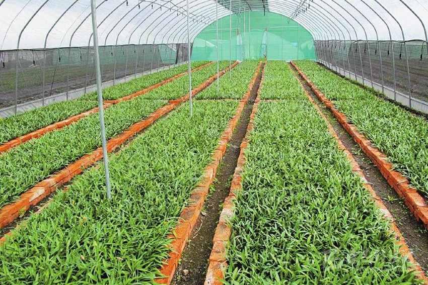 康定高原藥材野生撫育基地藥材繁育大棚。