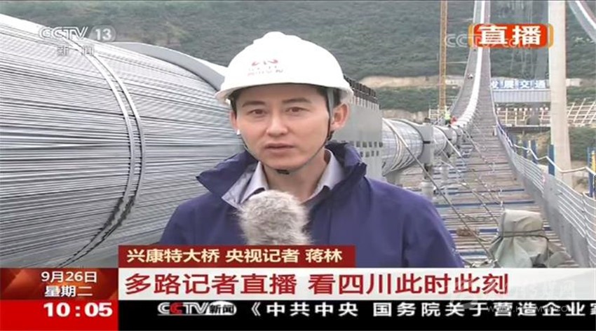 蔣林從興康特大橋建設現場發回直播報道