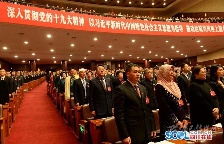 上午10時許,王東明宣布:四川省第十三屆人民代表大會第一次會議開幕。全體起立,雄壯的中華人民共和國國歌在會場內唱響。