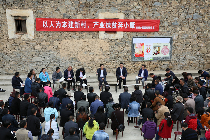圖為劉成鳴在麥崩鄉昌昌村以壩壩會形式與大家座談。