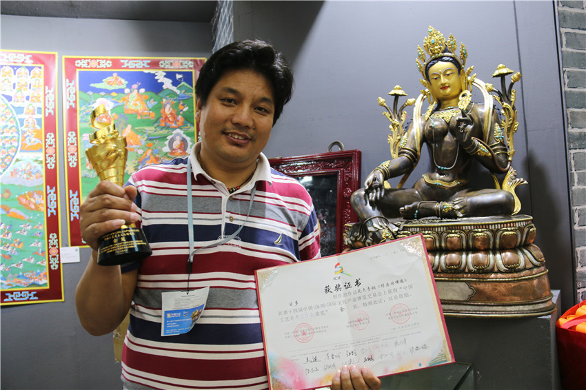 本網訊(記者 宋志勇 文/圖)5月14日,歷時5天的2018年第十四屆中國(深圳)國際文化產業博覽交易會(以下簡稱深圳文博會)圓滿落幕。我州憑借花色青銅《綠度母佛像》作品摘得“中國工藝美術文化創意獎”金獎,成為本屆文博會大眾關注的焦點。