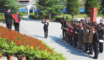 在瀘定橋紀念館重溫入黨誓詞。本網資料庫圖片