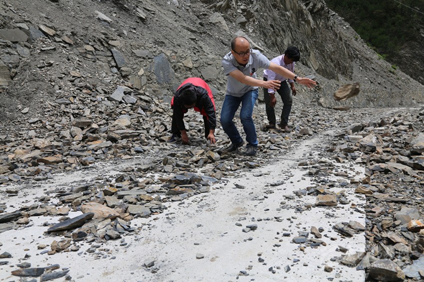 大約1小時后,500米長的鋼軌推送完成。施工人員又分組開展取輪軸、固定鋼軌等施工。多組施工人員流水作業,將施工面向前推進。16時30分,最后一組長鋼軌換鋪施工基本完成,川藏鐵路成雅段長鋼軌實現單線鋪通。