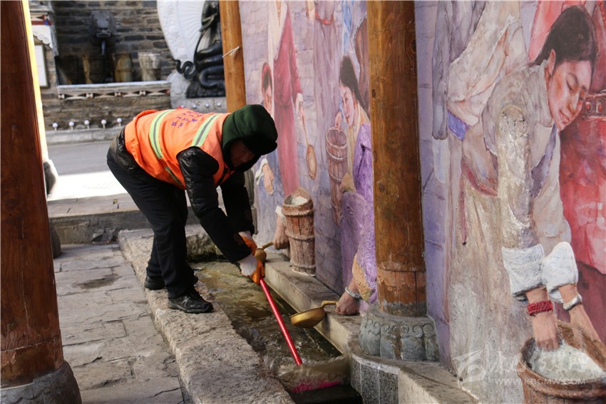 每逢節假日,是環衛工人最忙最累的時候。2月5日下午,康定強盛公司清洗組組長楊曉康帶著全組工作人員來到康定市水井子,打掃整個水井子的環境衛生。“初一‘搶頭水’是多年來康定市民的過年習俗,我們現在把這里打掃干凈,讓市民們在‘搶頭水’時有干凈整潔的環境。”楊曉康告訴記者。