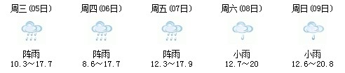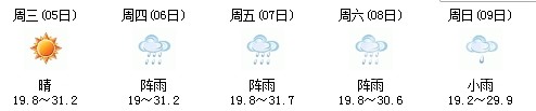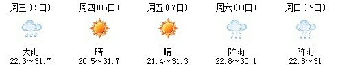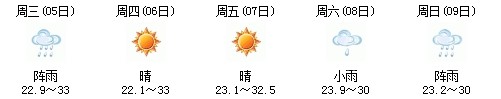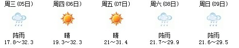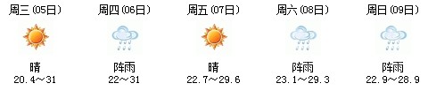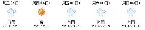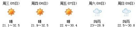 5日開始一直到9日都是多云到晴的天氣,日最高氣溫27℃左右。每天都有陣雨(小雨),考生出行應防山地災害。