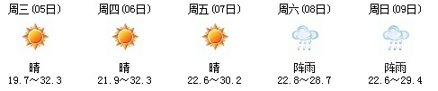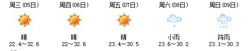 5日白天開始一直到9日,以多云天氣為主,其中7日晚有陣雨,日最高氣溫在30度上下,天氣比較舒適,不會出現高溫天氣,高考和端午節期間天氣還是比較給力: