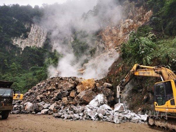周宗海說,為搶通中斷路段,珙縣自然資源和規劃局于18日中午一點開始,組織機具10余臺 ,人員20余人進行連續加班作業,對垮塌巖體進行爆破、清運,清理碎石約15000噸,于19日晚上十點搶通了該路段。