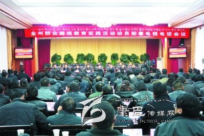 本網訊(記者 陳楊 文/圖) 16日上午,全州群眾路線教育實踐活動動員部署電視電話會議在康定召開,會議全面貫徹落實中央和省委關于開展第二批黨的群眾路線教育實踐活動的決策部署,深入推進群眾工作全覆蓋檢討糾錯,積極動員全州各級黨組織和廣大黨員干部投身黨的群眾路線教育實踐活動和群眾工作全覆蓋,讓為民務實清廉成為全州黨員干部的自覺行為。州委書記胡昌升作動員講話。州委副書記、州政府州長益西達瓦主持會議。州委副書記、州紀委書記劉坪對2013年度全州群眾工作推進情況進行了通報。