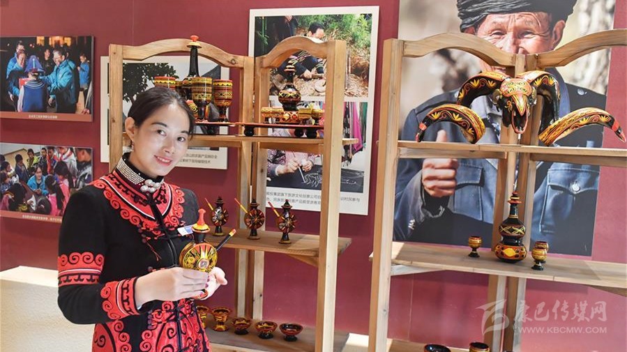 9月7日,在景區工作的彝海村村民馬嘿補吉莫展示彝族特色手工藝品。新華社記者 孫瑞博