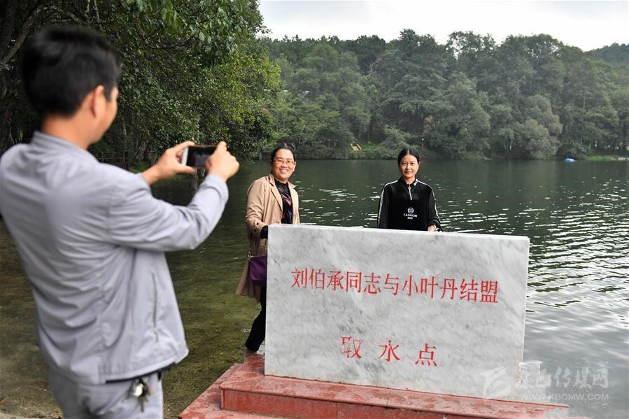 9月7日,游客在景區內彝海結盟取水點拍照留念。新華社記者 孫瑞博