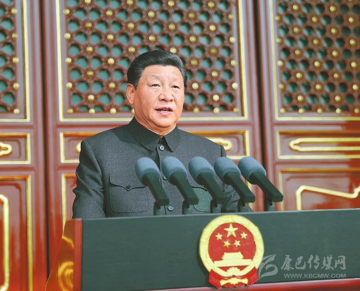 在嘹亮的號角聲中,習近平走上主席臺,發表重要講話,代表黨中央、國務院,向全國各族人民、全體共產黨員,向中國人民解放軍指戰員和武警部隊官兵,向各民主黨派和無黨派人士,致以崇高的敬意;向香港特別行政區同胞、澳門特別行政區同胞、臺灣同胞和廣大海外僑胞,致以誠摯的問候;向支持和幫助新中國建設事業的友好國家和國際友人,致以衷心的感謝。