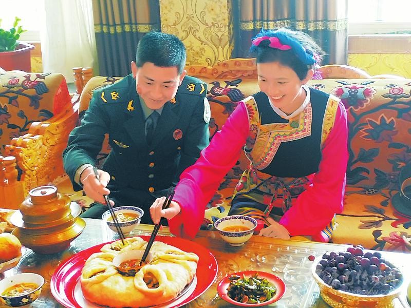 在中國文化中,吃面自古以來就有福壽延綿的美好寓意。圖為10月2日,駐甘孜巴塘官兵與夏邛鎮群眾同吃巴塘冒面,為祖國慶生,祝愿祖國繁榮昌盛、國泰民安。 華西都市報-封面新聞記者 田雪皎 攝