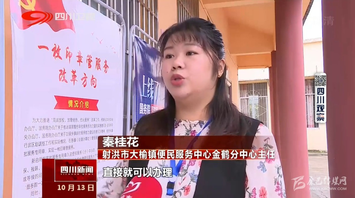 射洪市大榆鎮便民服務中心金鶴分中心主任秦桂花說:“現在這個一枚印章整合之后 這邊分中心直接就可以辦理 非常的便民。”