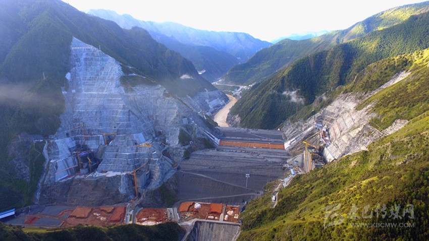 為兩河口水電站大壩施工區(qū)全景。