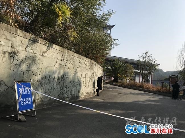 川北民俗文化園是此次廣元市確定的湖北游客定點賓館之一,1月29日,記者在川北民俗文化園看到,酒店門口有清楚的“湖北游客定點賓館”標牌,2位戴著口罩的保安負責在門口勸返其他游客。院內有10多位帶著工作證的工作人員在執勤,對記者也進行了詢問。
