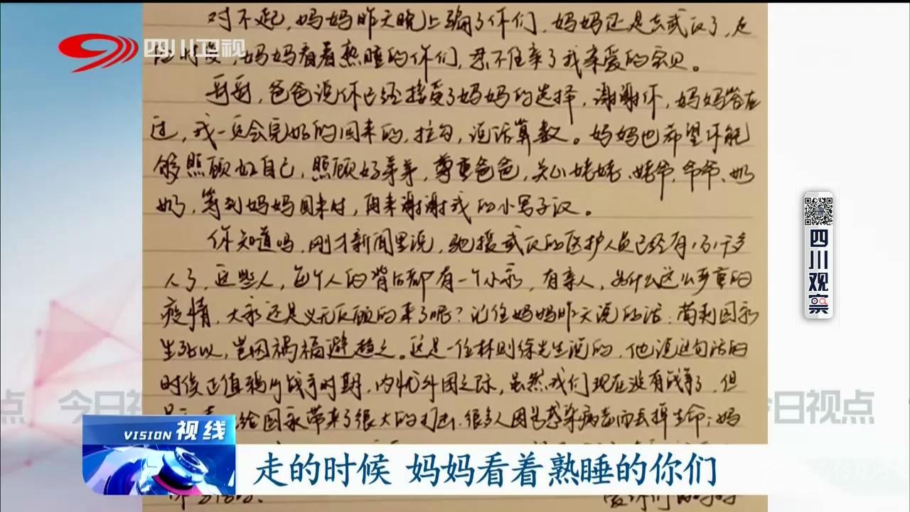“媽媽還是騙了你,去了武漢,走的時候看到你們還在熟睡,忍不住親了我親愛的寶貝。哥哥,爸爸說你已經接受了***選擇,謝謝你,媽媽答應過我一定會完好的回來的,拉鉤,說話算話……”