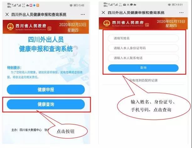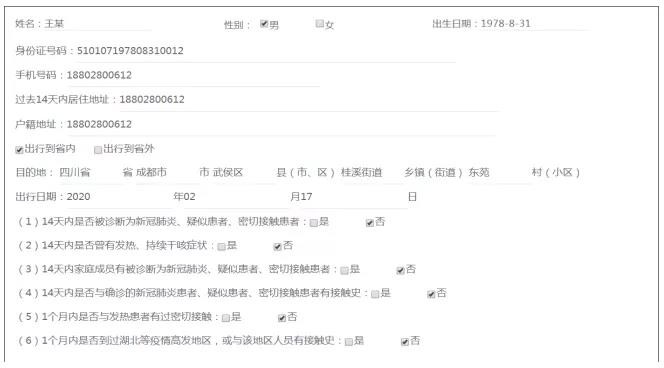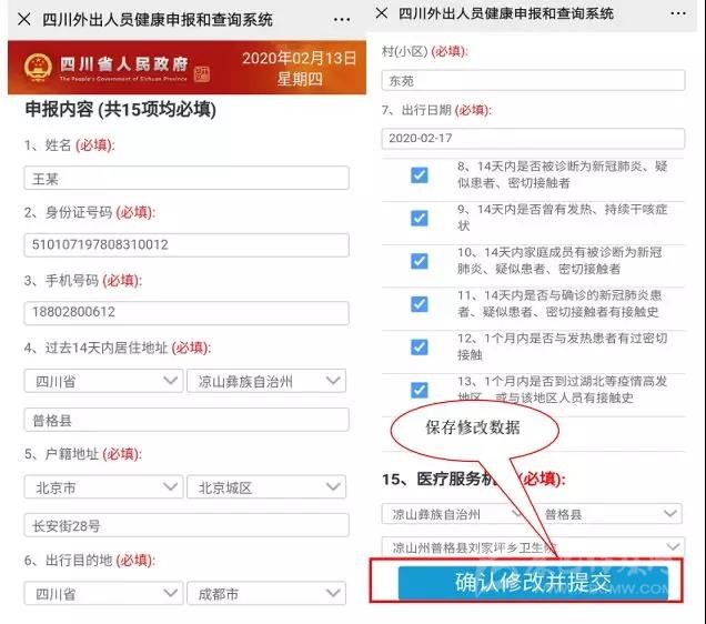 四川外出人員健康申報和查詢系統