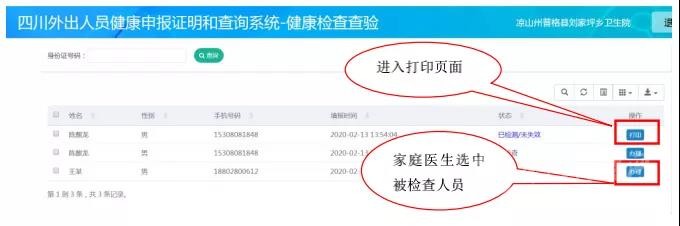 所有在選定醫院或衛生院檢查的外出人員信息一覽表:
