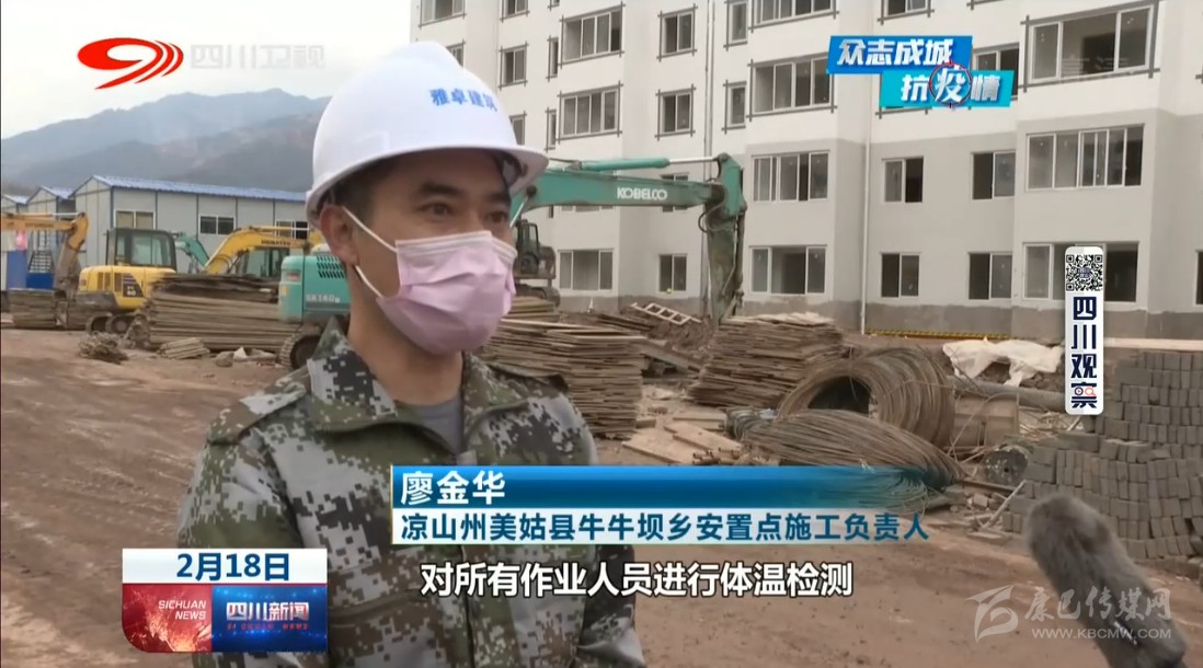 涼山州美姑縣牛牛壩鄉安置點施工負責人廖金華:每日上班前對所有作業人員進行體溫檢測,對施工現場宿舍等進行消毒處理,嚴格管理材料運輸車,固定運輸車和駕駛員,確保材料供應,全面做好防疫工作,有序推進施工進度。