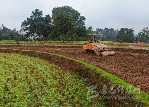 2月24日,瀘州市合江縣白米鎮橋上村,專業合作社的機耕手在用旋耕機耕地。 記者 郝飛 攝
