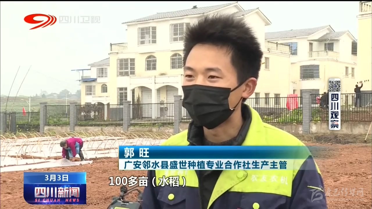 廣安市鄰水縣盛世種植專業合作社生產主管 郭旺: 我們今年預計(播種)100多畝水稻,現在已完成30%左右,剩余的估計在3月10號左右完成。