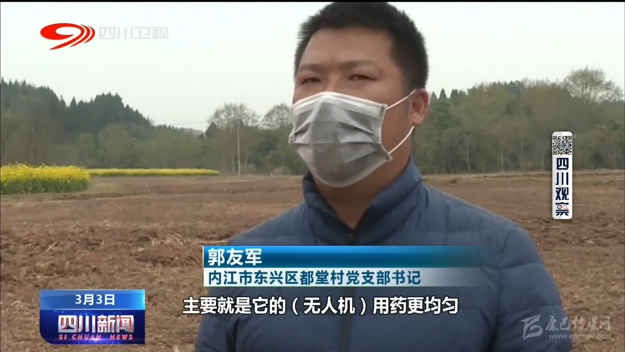 內江市東興區都堂村黨支部書記 郭友軍:主要就是它的(無人機)用藥更均勻,除草更有效果。