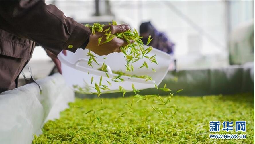 4月20日,在蘆山縣寶盛鄉,工作人員在加工茶葉。