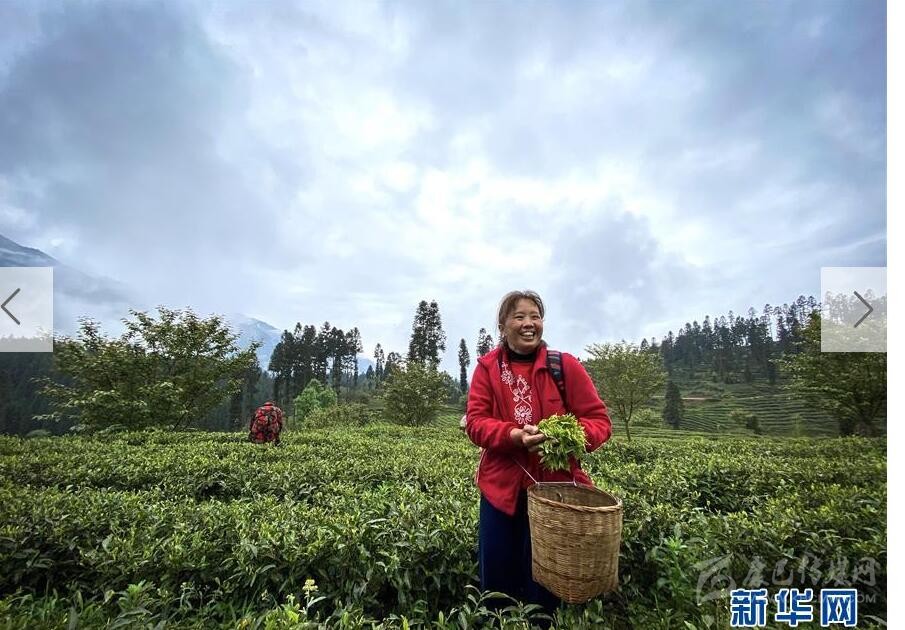 4月20日,在蘆山縣寶盛鄉,采茶工人在采摘茶葉(手機拍攝)。