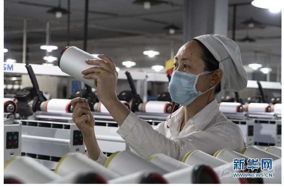 4月19日,在蘆山縣一家紡織企業,工人在檢查產品生產情況。