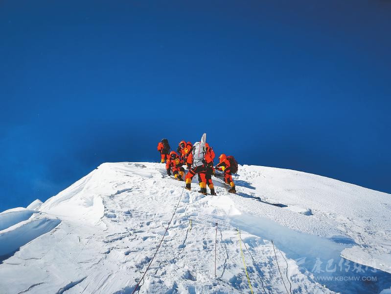 5月6日,登頂測量正式啟動,因天氣原因兩度推遲沖頂計劃。27日,登頂隊員戰勝極高海拔區域降雪、大風等艱險,成功登頂。隊員在峰頂停留了150分鐘,其間還開展了峰頂雪深和氣象等測量,創造了中國人在珠峰峰頂停留時長新紀錄。