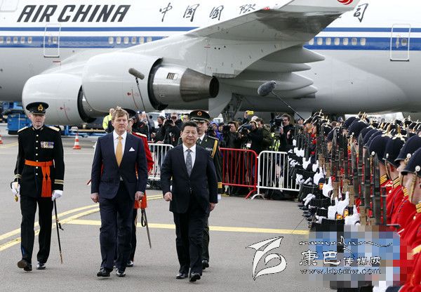3月22日,國家主席習近平抵達阿姆斯特丹,應荷蘭國王威廉-亞歷山大邀請,對荷蘭進行國事訪問,開啟歐洲之旅。威廉-亞歷山大在機場為習近平舉行隆重歡迎儀式。這是習近平在威廉-亞歷山大陪同下檢閱儀仗隊。新華社記者 鞠鵬 攝