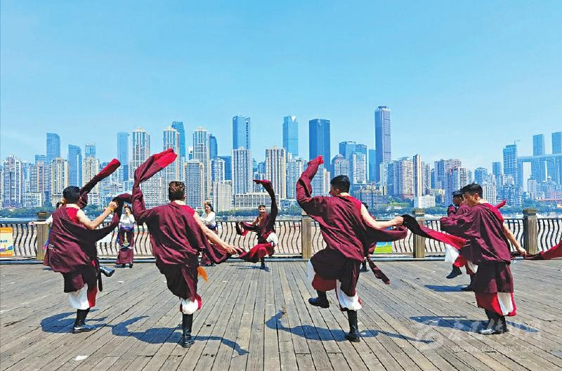 7月中旬,德格縣格薩爾藝術團赴重慶開展甘孜州建州70周年旅游線路推介暨“絲路甘孜康藏秘境”品牌發布會,在重慶市區進行文藝演出。 (德格縣文化廣播電視和旅游局供圖)