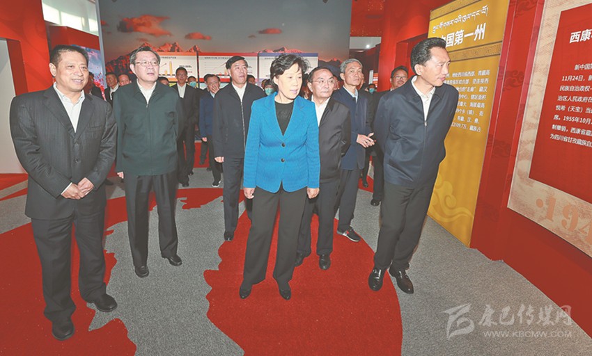 從和平解放到建立新生政權,從封閉落后到暢通高原,從平息武裝叛亂,開展“四反運動”到民主改革全面完成,從“穩藏必先安康” 到“安康必先通康”,從脫貧攻堅到攻克“三區三州”貧困堡壘,從溫飽不足到決勝全面小康,從發展滯后到繁榮興盛,從一窮二白到暢通甘孜、美麗甘孜、和諧甘孜、小康甘孜即將建成。走進一個個展區,田向利、郭衛平等領導同志站在一幅幅反映甘孜70年來滄桑巨變的珍貴圖片前,留連駐足,認真聽取工作人員的講解,并不時交流討論,對甘孜大地70年來經濟社會所取得的新成就、新變化深感振奮、贊不絕口。