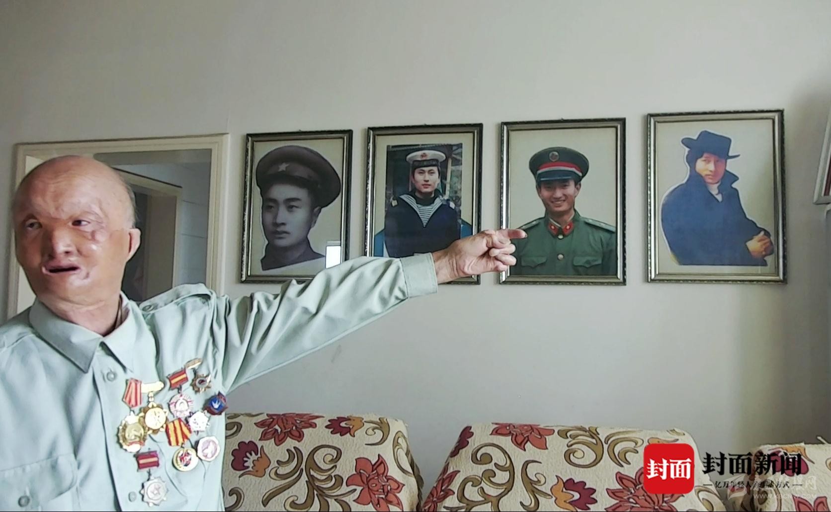 初見這位老人,他的面容讓人印象深刻。69年前那個冬天的朝鮮戰場上,是他一輩子最難忘的經歷。年僅20歲的他遭遇敵機投擲的凝固汽油彈,導致面部、手部嚴重燒傷,造成一級傷殘。