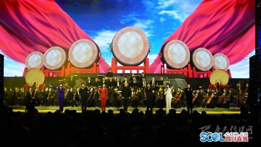 19時30分許,在催人奮進的陣陣鼓聲中,開幕式正式開始。胡和平在致辭中表示,第六屆中國詩歌節在四川省和重慶市兩地一同舉辦,是落實黨中央推動成渝地區雙城經濟圈建設決策部署的務實之舉,也是以文化繁榮為經濟社會高質量發展賦能助力的務實之舉。剛剛閉幕的十九屆五中全會把文化建設放在突出位置,明確“十四五”時期文化建設目標要求,提出到2035年建成文化強國的遠景目標。廣大文藝工作者要以習近平總書記關于文藝工作的重要論述精神為遵循,貫徹落實黨中央關于文化工作的各項決策部署,堅持以人民為中心的創作導向,堅持與時代同步伐,發時代之先聲、頌時代之精神,用心用情用功抒寫偉大時代,推出更多謳歌黨、謳歌祖國、謳歌人民、謳歌英雄的精品力作,推動社會主義文化繁榮興盛,為實現中華民族偉大復興中國夢凝聚文化力量。