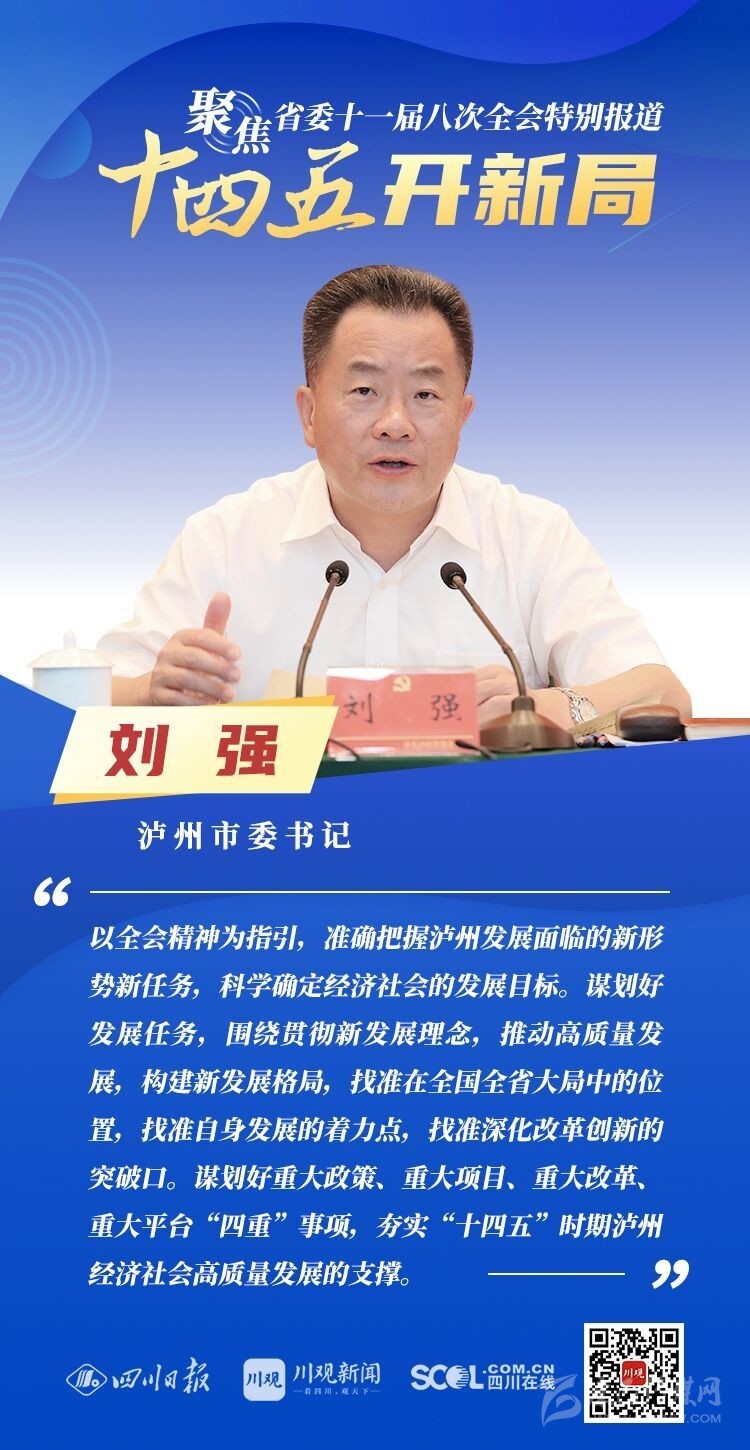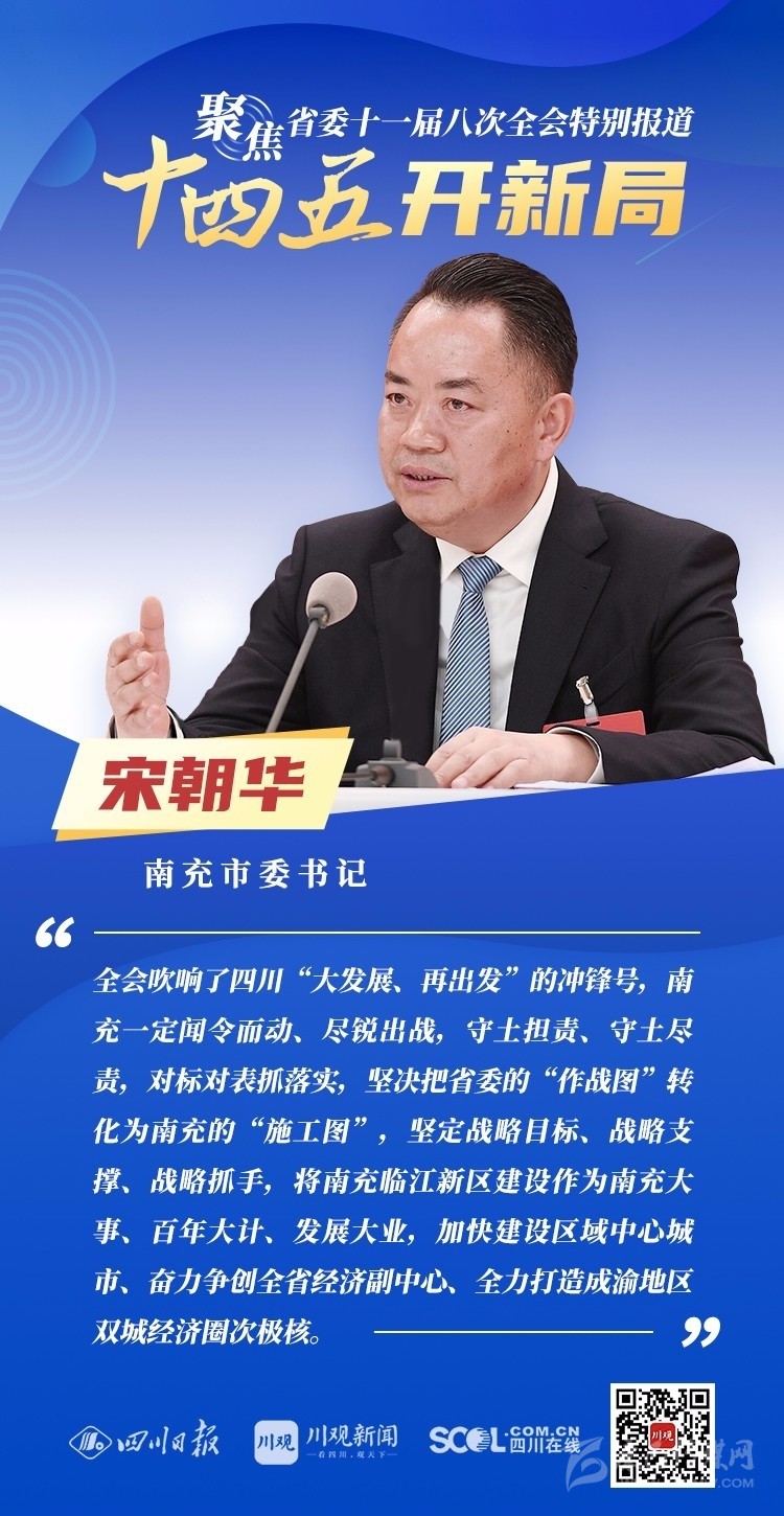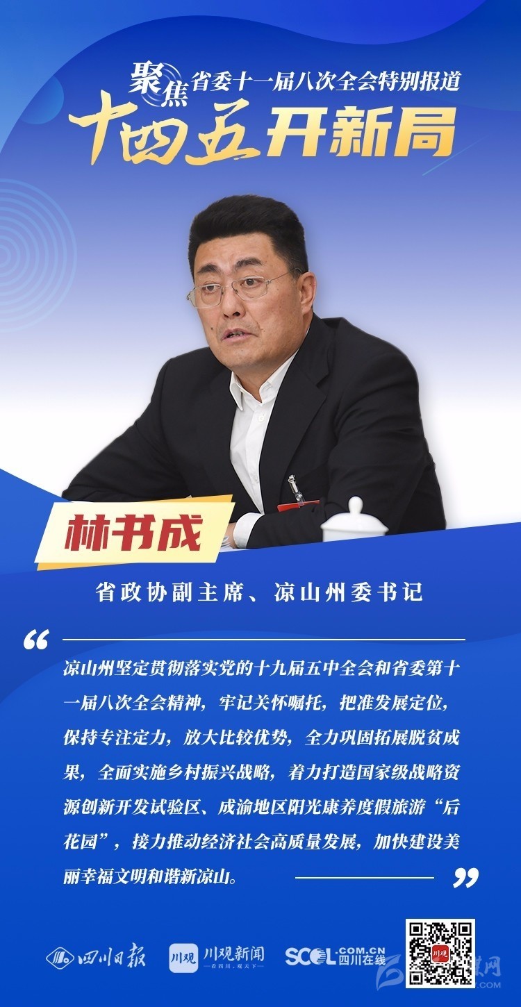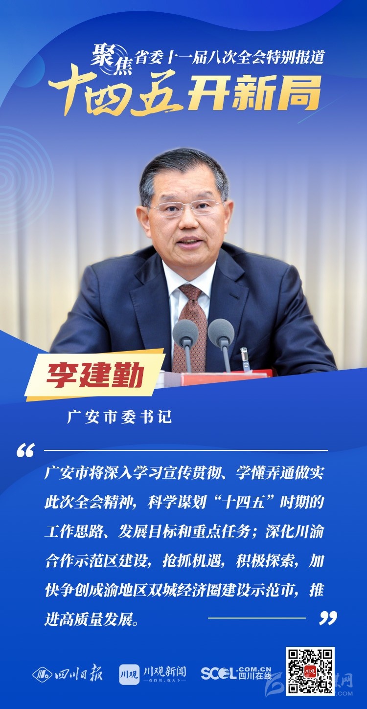 12月3日,中共四川省委十一屆八次全會在成都開幕,全會將深入學習貫徹黨的十九屆五中全會精神,審議《中共四川省委關于制定四川省國民經濟和社會發展第十四個五年規劃和二〇三五年遠景目標的建議(討論稿)》,為未來5年乃至更長時期四川發展謀劃新藍圖 。